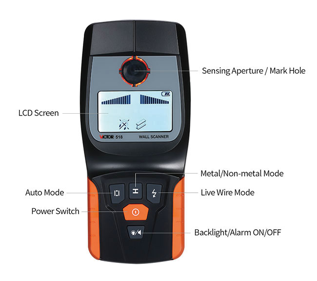 VICTOR 518 Wall Scanner Metal Detector Find Metal Wood Studs Multifunction AC Cable Live Wire Scanner Warning Gold Detector